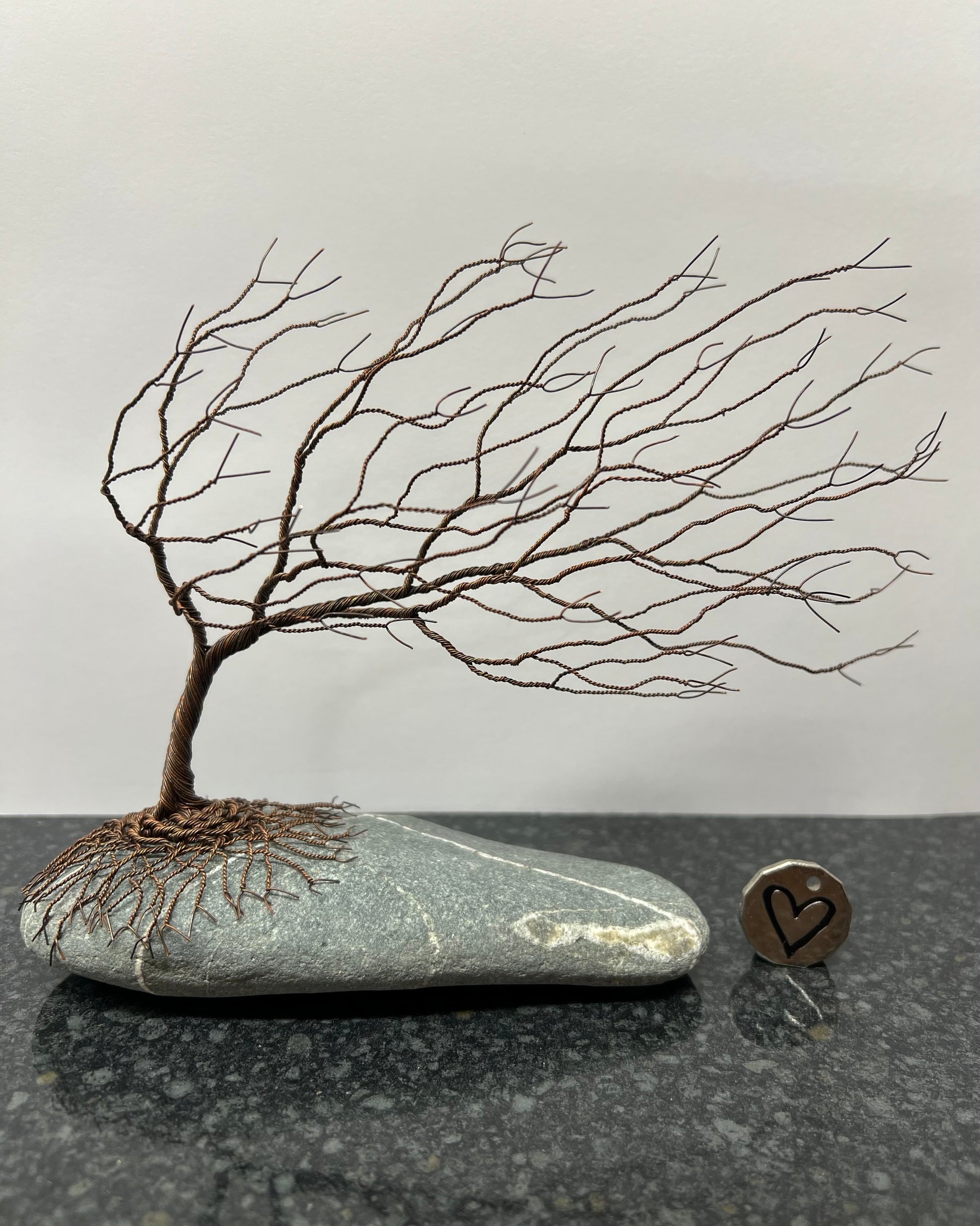 Windswept Celtic Tree Sculpture - Antique Copper on Pebble - Medium Plus