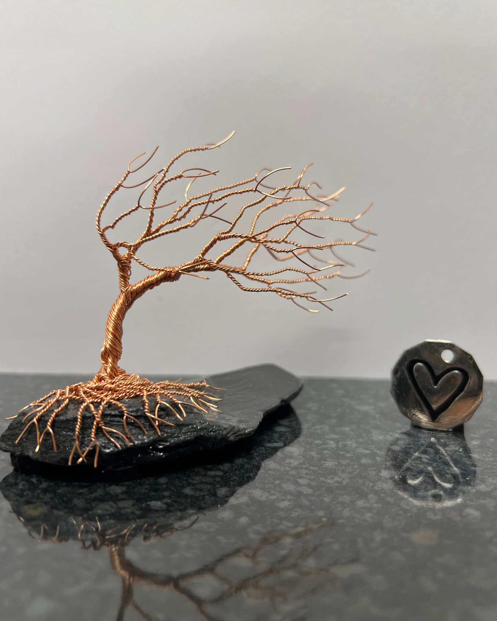 Windswept Celtic Tree Sculpture - Copper on Slate - Small Plus